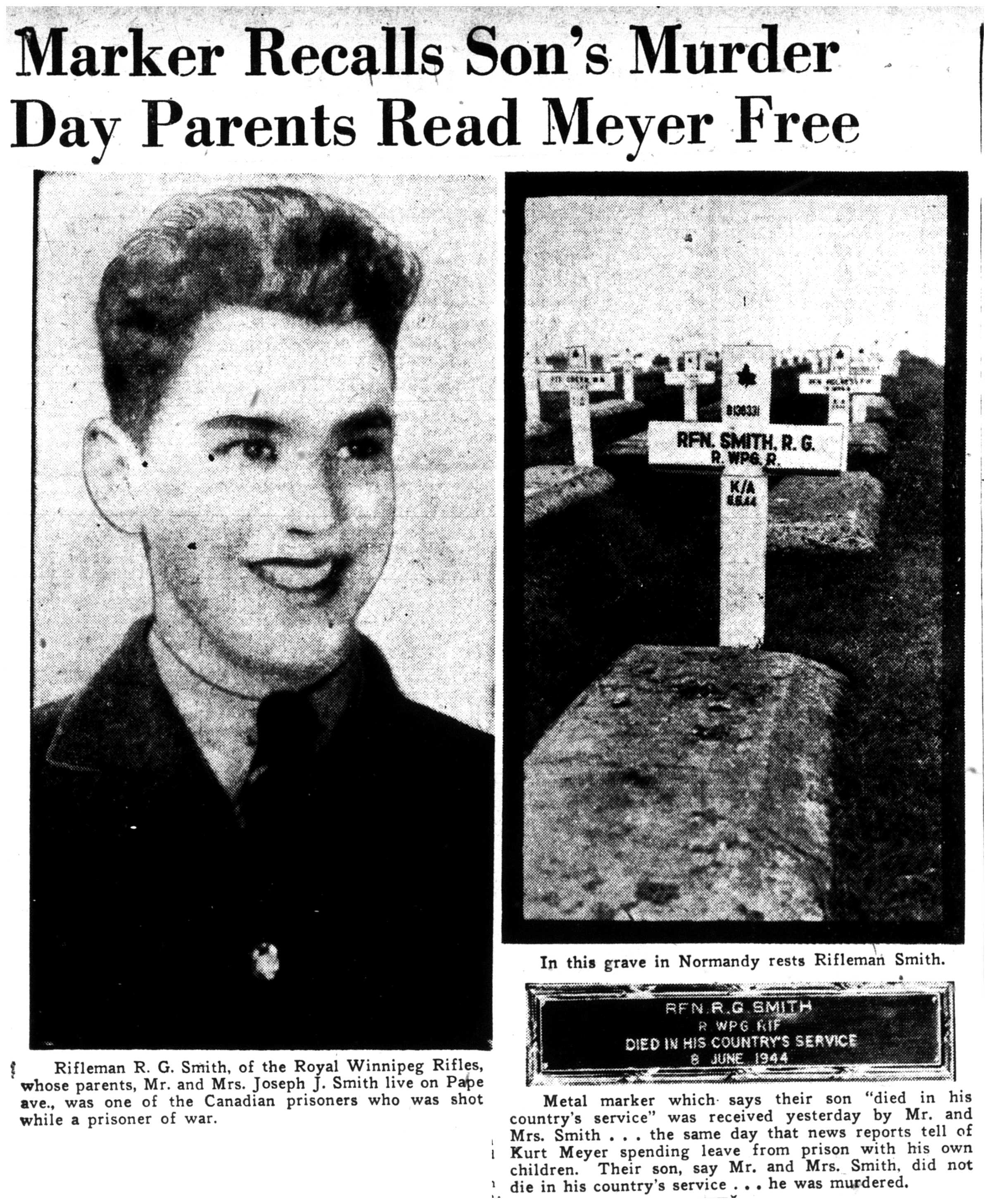 Les Canadiens qui sont morts vers la fin des combats en Normandie sont inhumés au cimetière militaire canadien de Bretteville-sur-Laize. Le cimetière militaire canadien de Bény-sur-Mer compte 2048 sépultures, ainsi qu'un monument spécial érigé à la mémoire d'un soldat du Corps canadien d'infanterie dont on sait qu'il a été inhumé ici, mais dont la tombe n'a jamais pu être trouvée.