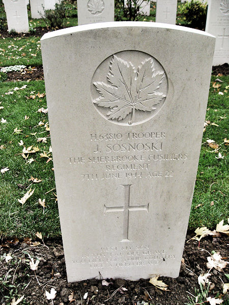 Les Canadiens qui sont morts vers la fin des combats en Normandie sont inhumés au cimetière militaire canadien de Bretteville-sur-Laize. Le cimetière militaire canadien de Bény-sur-Mer compte 2048 sépultures, ainsi qu'un monument spécial érigé à la mémoire d'un soldat du Corps canadien d'infanterie dont on sait qu'il a été inhumé ici, mais dont la tombe n'a jamais pu être trouvée.
