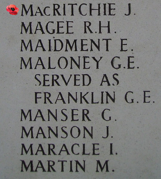À LA PLUS GRANDE GLOIRE DE DIEU ICI SONT INSCRITS LES NOMS DES SOLDATS QUI SONT TOMBÉS DANS LE SAILLANT D'YPRES, MAIS QUE LES HASARDS DE LA GUERRE ONT EMPÊCHÉS D'AVOIR UNE IDENTITÉ ET UNE SÉPULTURE HONORABLE COMME LEURS CAMARADES DANS LA MORT.