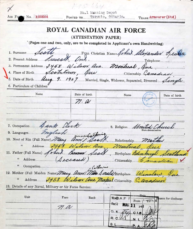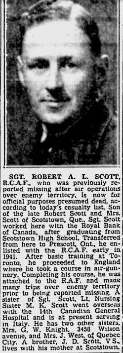 Fils de Robert et Mary A. Scott, de Montréal, Province de Québec, Canada.