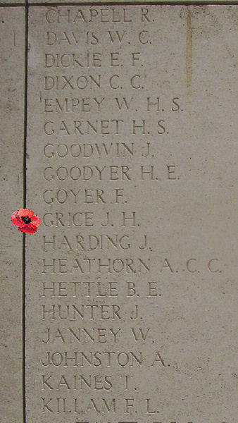 À LA PLUS GRANDE GLOIRE DE DIEU ICI SONT INSCRITS LES NOMS DES SOLDATS QUI SONT TOMBÉS DANS LE SAILLANT D'YPRES, MAIS QUE LES HASARDS DE LA GUERRE ONT EMPÊCHÉS D'AVOIR UNE IDENTITÉ ET UNE SÉPULTURE HONORABLE COMME LEURS CAMARADES DANS LA MORT.