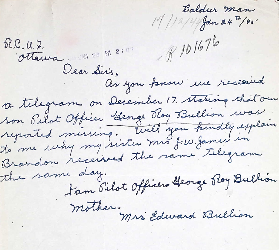 Sqdn. Fils de Edward et Margaret Edna Bullion, de Baldur, Manitoba, Canada.