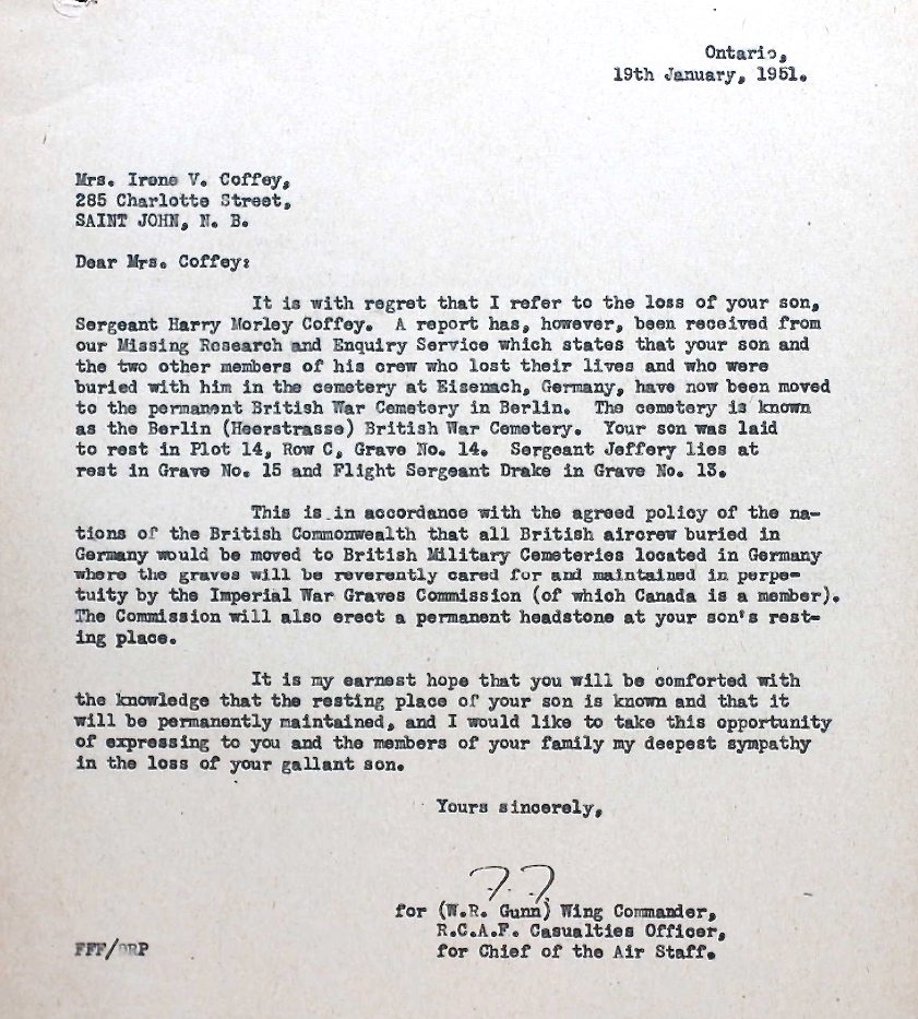 Fils de Harry Morley Coffey et Irene Veronica Coffey, de Saint John, Nouveau-Brunswick. Canada.