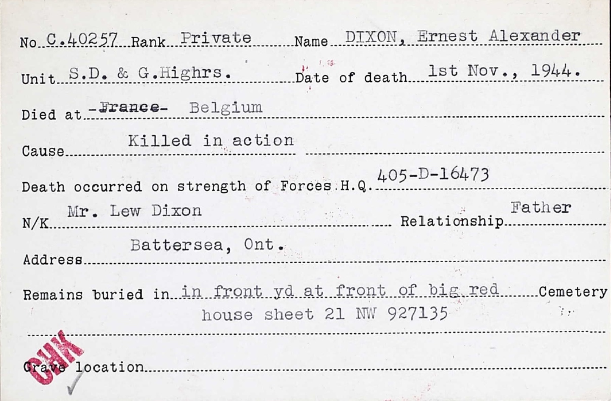 Fils de Llewellyn et Daisy Dixon, de Battersea, Ontario.