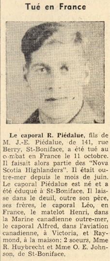 Galerie numérique de Caporal suppléant Ralph Piedalue
