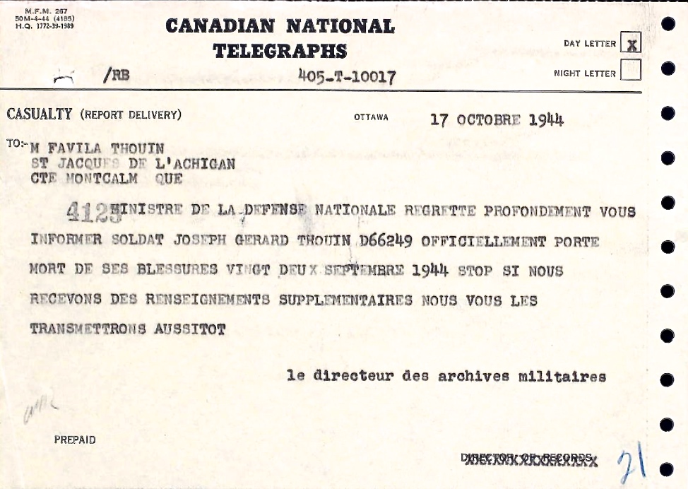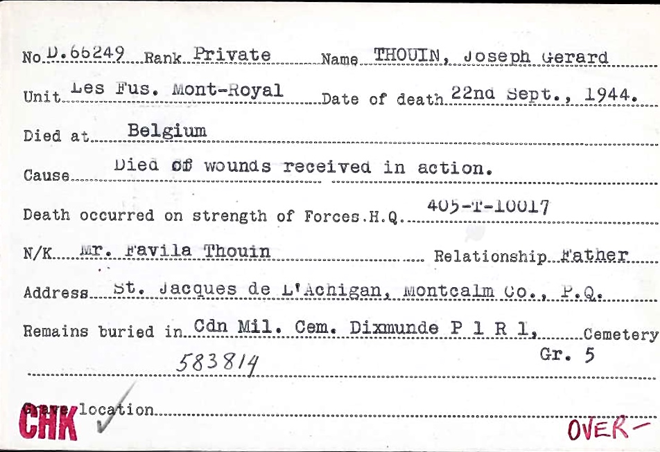 Galerie numérique de Soldat Joseph Gerard Thouin