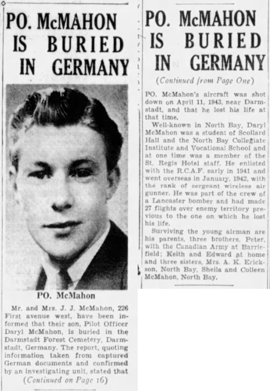 Fils de John T. McMahon et Agnes McMahon, de North Bay, Ontario.
