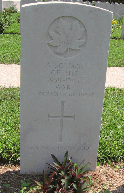 «1939 - 194 Les officiers et les soldats dont ce Mémorial rappelle le souvenir sont morts pendant la défense de Hong Kong en décembre 1941 et pendant les années de captivité qui ont suivi, et ils n'ont aucune sépulture connue. »