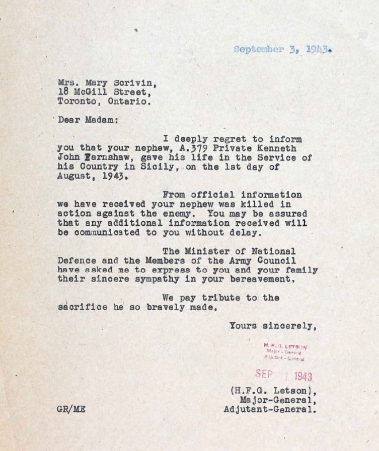 Le 10 juillet 1943, après avoir conclu avec succès à la mi-mai la campagne d'Afrique du Nord, un contigent allié de 160 000 hommes, formé de soldats Américains et du Commonwealth, débarqua en Sicile avant de prendre d'assaut l'Italie continentale. Les Italiens, qui allaient bientôt signer la paix avec les Alliés et poursuivre la guerre à leurs côtés, offrirent peu de résistance. L'opposition des Allemands fut toutefois très vigoureuse. La campagne de Sicile prit fin le 17 août, lors de la jonction des deux contingents alliés à Messine. On ne parvint pas cependant à couper la retraite ennemie. Agira fut prise le 28 juillet par la 1re Division canadienne. En septembre, on choisit le site où seraient inhumés tous les Canadiens morts au combat durant la campagne de Sicile. Le cimetière militaire canadien d'Agira renferme 491 tombes de soldats du Commonwealth décédés durant la Seconde Guerre mondiale.