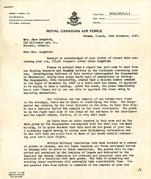 Galerie numérique de Flight Sergeant Arthur Louis Sedgwick