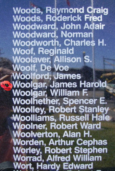 Frère du Lieutenant d'aviation William Francis Woolgar, décédé au service de l'Aviation royale du Canada.