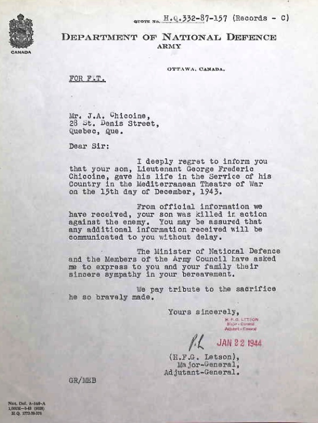 Galerie numérique de Lieutenant George Frédéric Chicoine