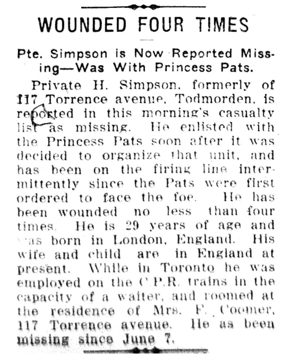 Galerie numérique de Soldat Harold Malcolm Simpson