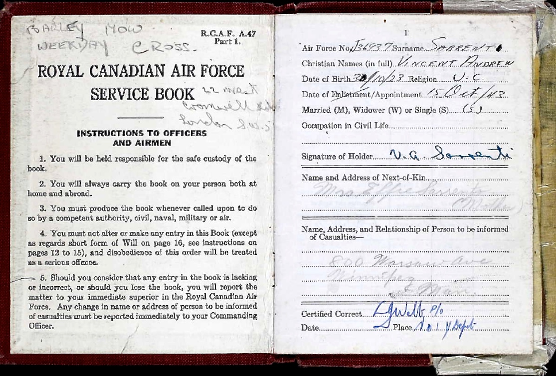 Galerie numérique de Lieutenant d'aviation Vincent Andrew Sorrenti