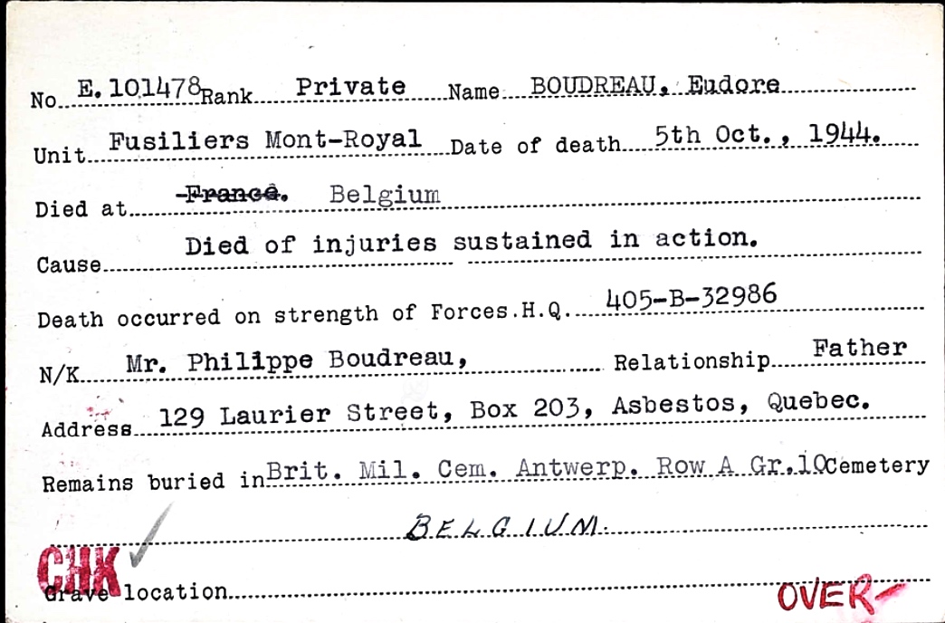 Fils de Philip et Alexina Boudreau, de Asbestos, Québec.