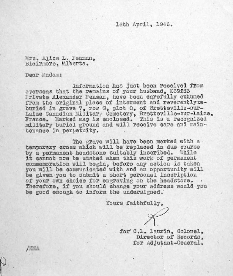 Fils de Allan et Ann Penman. Époux d' Alice Lillian Penman, de Blairmore, Alberta.