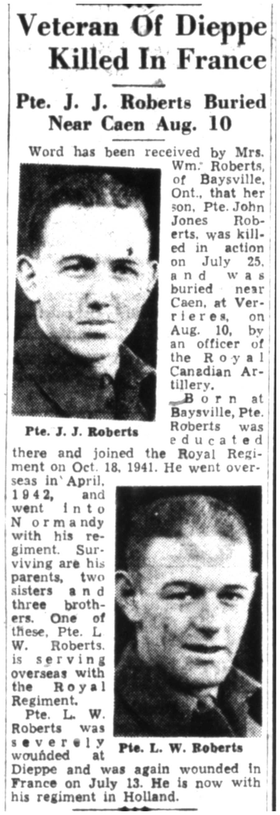 Fils de William L. et Anne L. Roberts, de Baysville, Ontario.