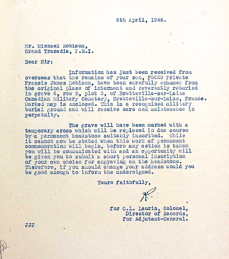 Fils de Michael et Agatha Robison, de Grand Tracadie, Île-du-Prince-Édouard.