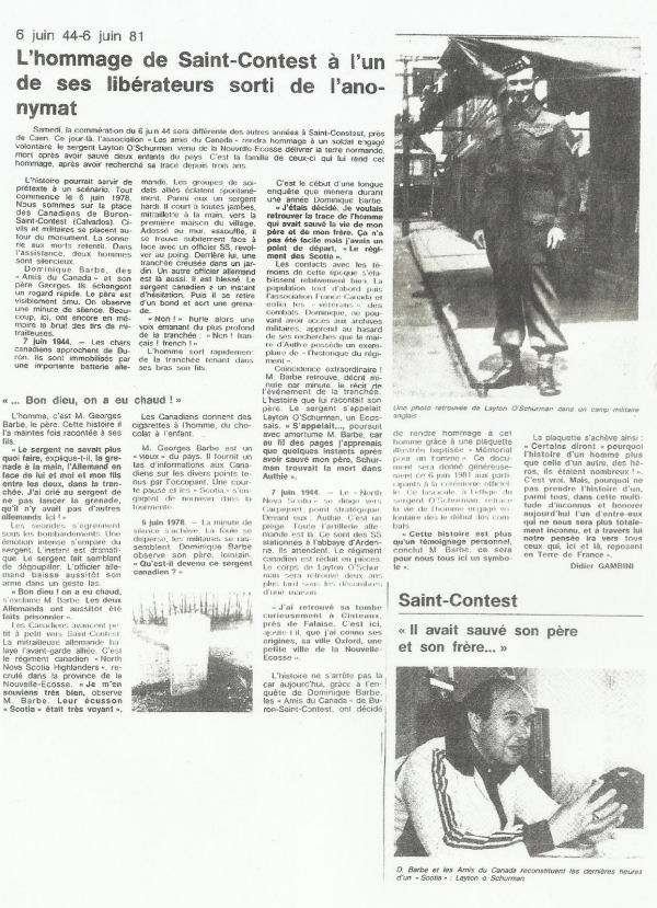 Fils de Clarence et Rettie Schurman, de Oxford, Cumberland Co., Nouvelle-Écosse.