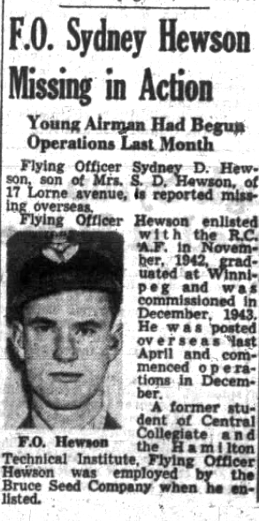 Fils de Sydney Dalton Hewson et Muriel Emily Hewson, de Hamilton, Ontario, Canada.