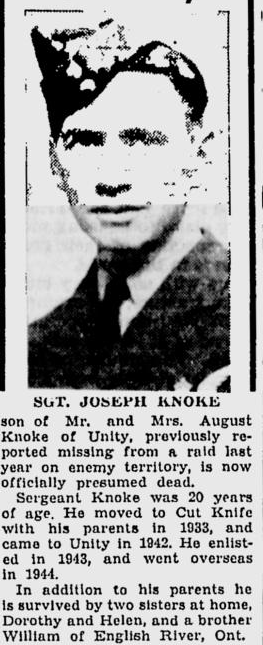 Fils de August et Justine Knoke, de Unity, Saskatchewan, Canada.