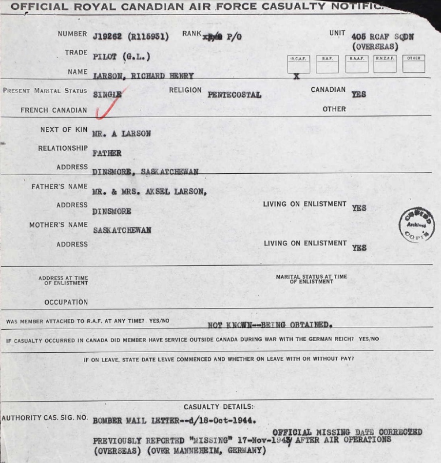 Galerie numérique de Sous-lieutenant d'aviation Richard Henry Larson