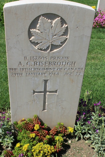 Pendant l'hiver de 1943, les armées allemandes en Italie défendaient une ligne qui s'étendait depuis la mer Thyrénéenne au nord de Naples, jusqu'à l'Adriatique au sud d'Ortona. L'objectif des Alliés consistait à enfoncer cette ligne et à s'emparer de Rome. De son côté, la 1re Division de l'infanterie canadienne devait franchir la rivière Moro et s'emparer d'Ortona. En janvier 1944, les Corps d'armée canadien choisit ce site, afin d'y inhumer ceux qui périrent au cours de la bataille d'Ortona et des combats livrés pendant les semaines qui l'avaient précédée et suivie. Aujourd'hui, on y trouve 1 651 sépultures dont plus de 50 non identifiées et celles de 1 375 Canadiens.