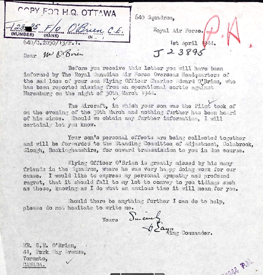 Fils de George Ross O'Brien et Bertha Mary O'Brien, de Toronto, Ontario.