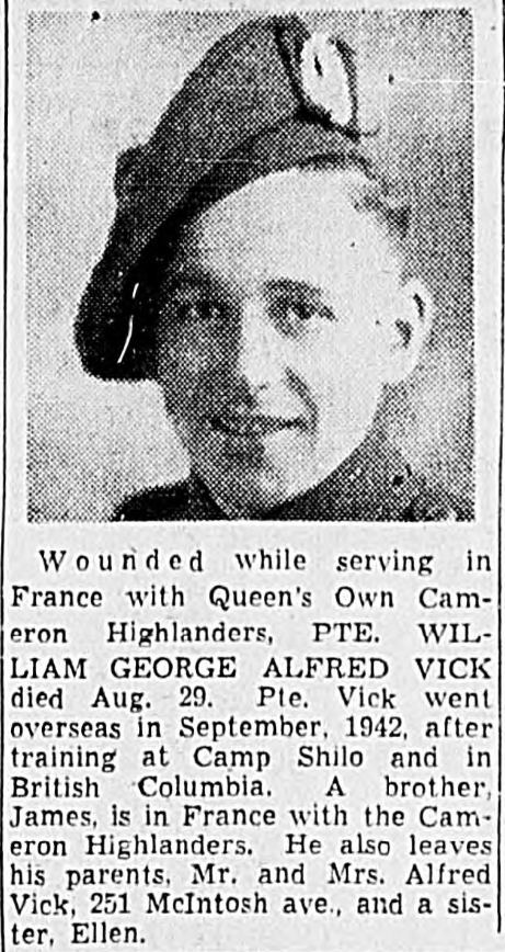 Fils de James Alfred et Victoria M. Vick, de Winnipeg, Manitoba.