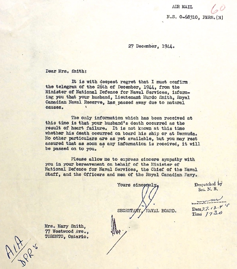 Fils de Donald et Bella Smith. Époux de Mary Smith de Fort William, Ontario.