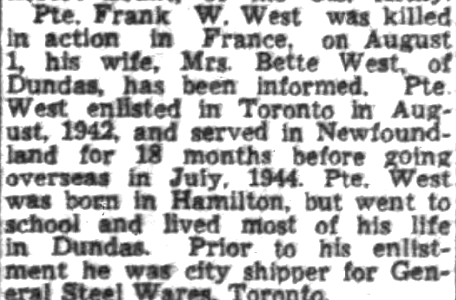 Fils de William E. et Mila Minna West. Époux d'Elizabeth M. West, de Toronto, Ontario.