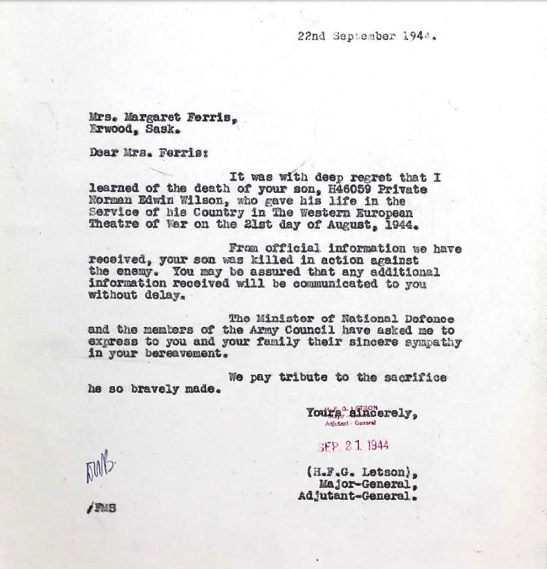 Fils de Margaret Ferris, de Erwood, Saskatchewan. Petit-fils de M. et Mme John A. Wilson, de Rathwell, Manitoba.