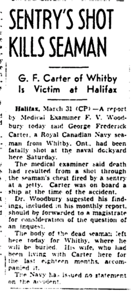 Fils de William John et Nina M. Carter, de Whitby. Époux de Dorothy E. Carter, de Halifax, Nouvelle-Écosse.