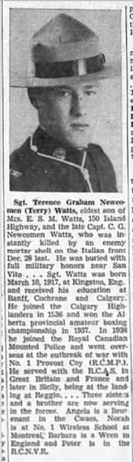 Fils de Capt. Charles et Eva Watts, de Vancouver, Colombie-Britannique.