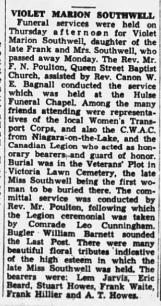 Fille de M. et Mme Frank Southwell, de Hastings, Sussex, Angleterre. Nièce de Mme C. E. Wilson, de St. Catharines.