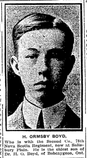 Fils de Docteur H.O. Boyd et Elizabeth Boyd de Bobcaygeon, Ontario.