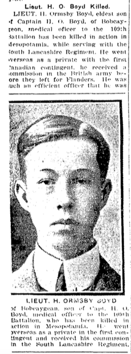 Frère du lieutenant Mossom Richard Boyd, décédé au service du Canadian Infantry (Alberta Regiment).