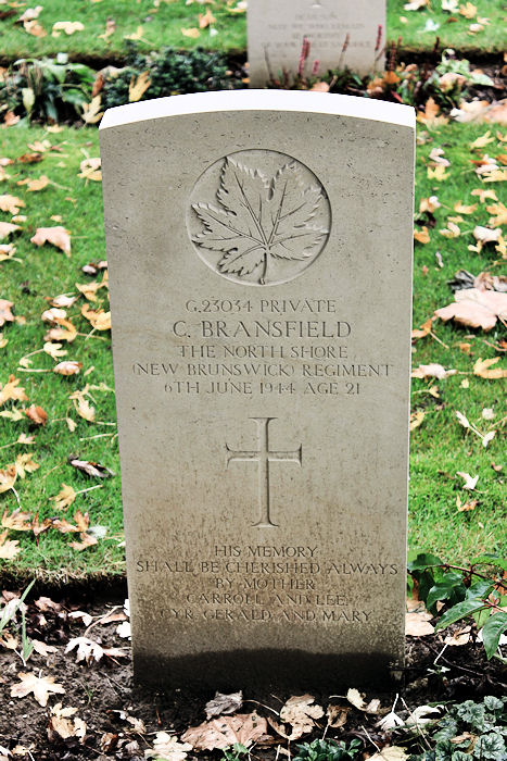 C'est un peu au nord, sur la côte, qu'est débarquée la 3e Division du Canada le 6 juin 1944 et que 335 officiers et soldats ont été tués au combat ou sont morts de leurs blessures. Dans ce cimetière reposent les Canadiens qui ont péri lors du débarquement en Normandie et au cours des premières étapes de la campagne qui a suivi.