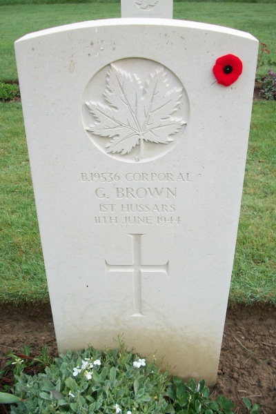 Les Canadiens qui sont morts vers la fin des combats en Normandie sont inhumés au cimetière militaire canadien de Bretteville-sur-Laize. Le cimetière militaire canadien de Bény-sur-Mer compte 2048 sépultures, ainsi qu'un monument spécial érigé à la mémoire d'un soldat du Corps canadien d'infanterie dont on sait qu'il a été inhumé ici, mais dont la tombe n'a jamais pu être trouvée.