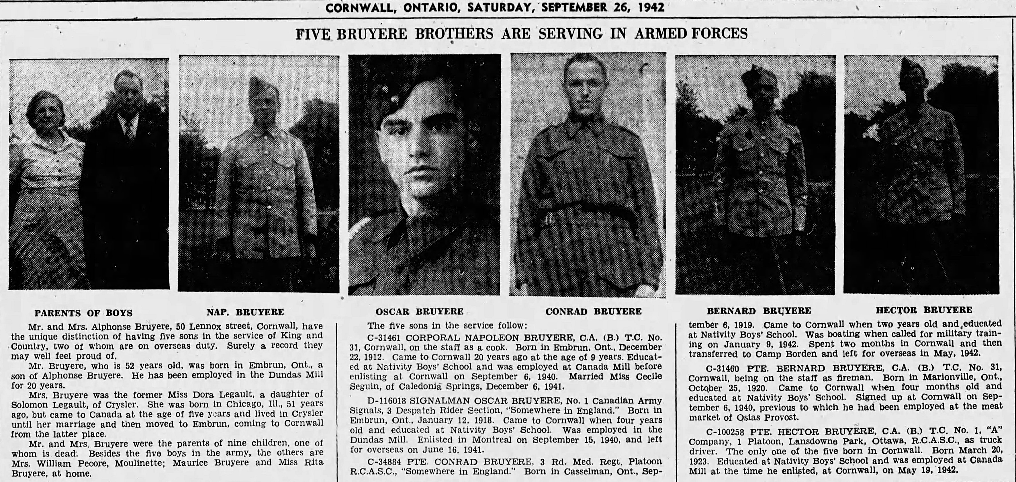 Fils de Alphonse et Dora Bruyere de Cornwall, Ontario.