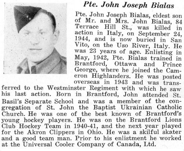Fils de John Bialas et de Kathleen Bialas (née Serdersky), de Brantford, (Ontario).