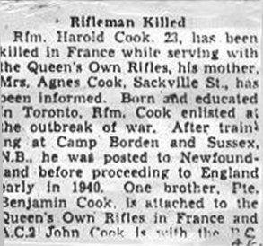 Les Canadiens qui sont morts vers la fin des combats en Normandie sont inhumés au cimetière militaire canadien de Bretteville-sur-Laize. Le cimetière militaire canadien de Bény-sur-Mer compte 2048 sépultures, ainsi qu'un monument spécial érigé à la mémoire d'un soldat du Corps canadien d'infanterie dont on sait qu'il a été inhumé ici, mais dont la tombe n'a jamais pu être trouvée.