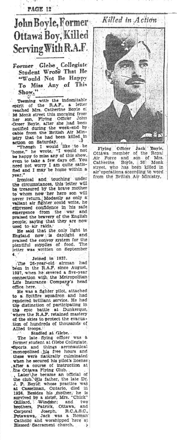 Fils du Dr. Joseph Patrick Boyle, B.A. et Catherine Greer Boyle d'Ottawa, Ontario.