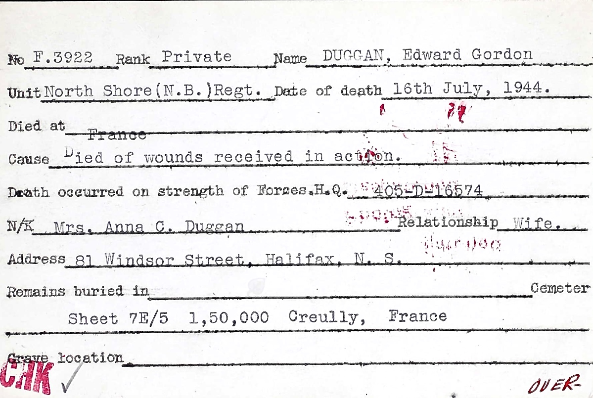 Unité/Régiment : North Shore (New Brunswick) Regiment, R.C.I.C.