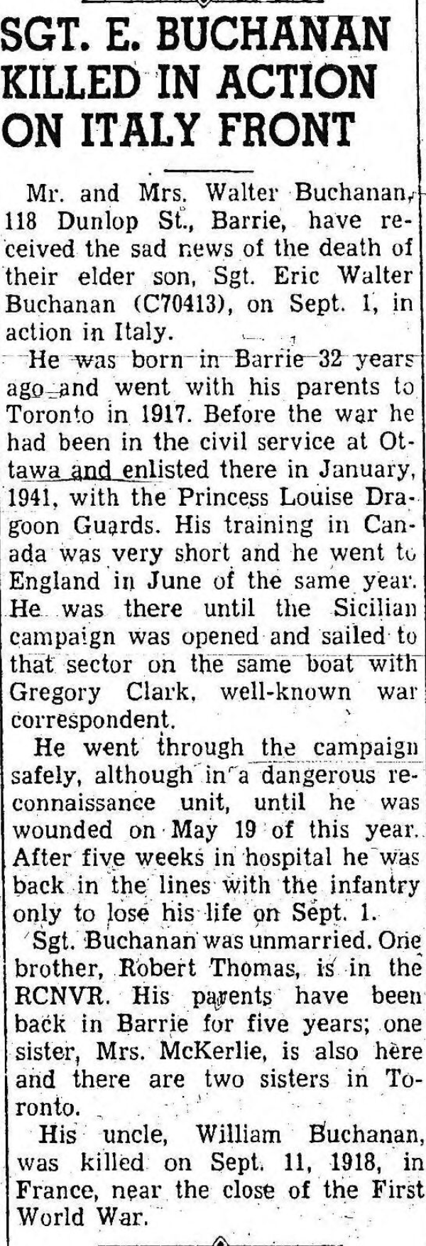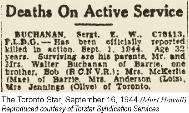 Fils de Walter et Ada Mae Buchanan, de Barrie, Ontario.