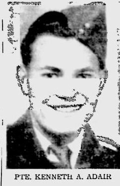 Frère du caporal Robert James Adair, décédé au service du Perth Regiment et du sergent Charles Franklin Adair, décédé au service de l'Aviation Royale du Canada.