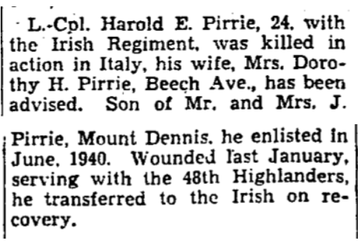 Fils de John et Dorothea Elizabeth Pirrie, de Toronto, Ontario. Époux de Dorothy H. Pirrie, de Toronto.