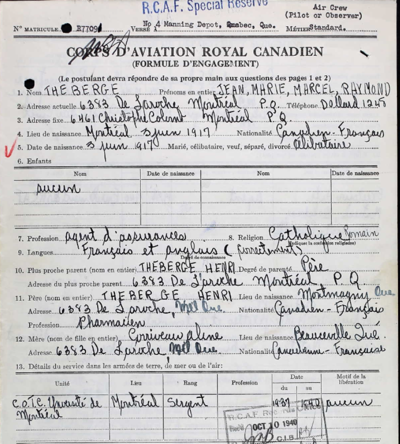 Galerie numérique de Flight Sergeant Jean Marie Marcel Raymond Theberge