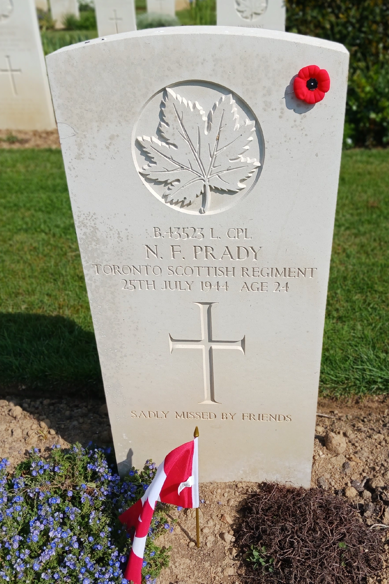 Les Canadiens qui sont morts vers la fin des combats en Normandie sont inhumés au cimetière militaire canadien de Bretteville-sur-Laize. Le cimetière militaire canadien de Bény-sur-Mer compte 2048 sépultures, ainsi qu'un monument spécial érigé à la mémoire d'un soldat du Corps canadien d'infanterie dont on sait qu'il a été inhumé ici, mais dont la tombe n'a jamais pu être trouvée.