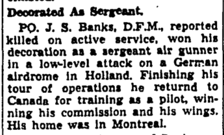 Fils de M. et Mme Joseph D. Banks. Époux d'Anne M. Banks, de East Angus, Quebec.